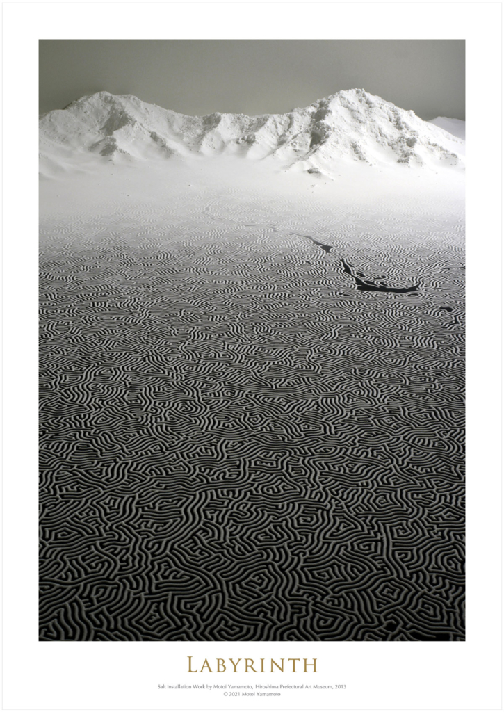 2013年に広島県立美術館で開催された「ピース・ミーツ・アート!」展で発表した塩のインスタレーション作品「迷宮」を私自身が撮影、デザインしたもので、紙質やパッケージにも随分こだわりました。