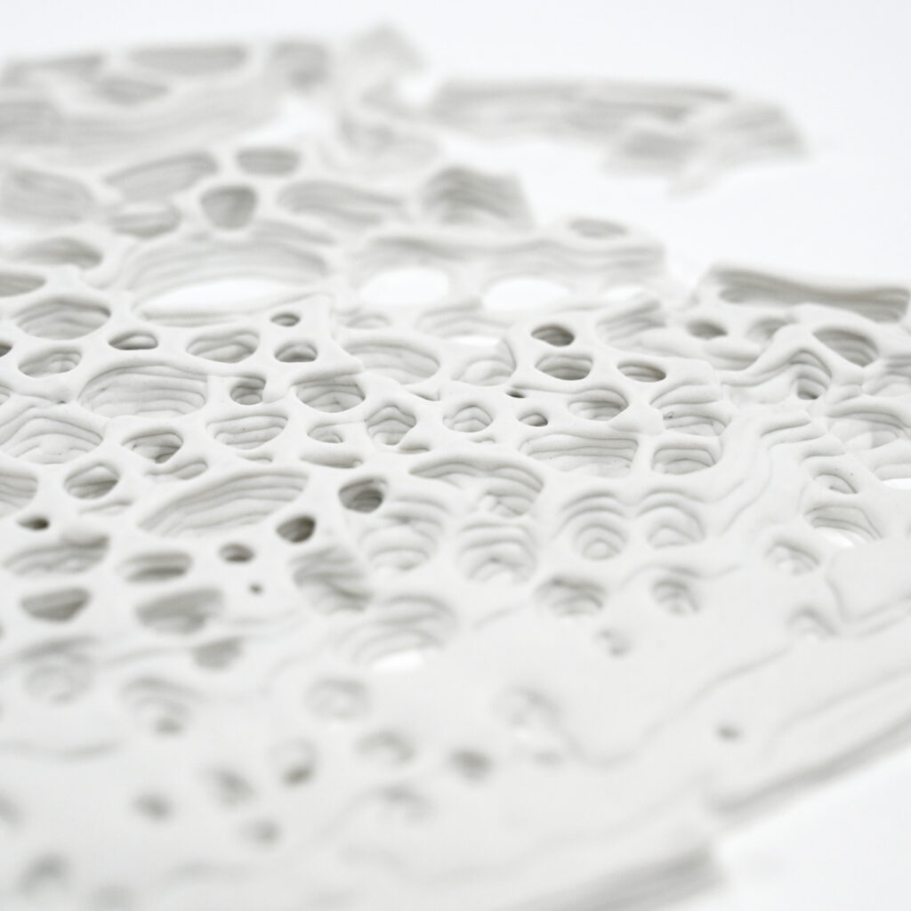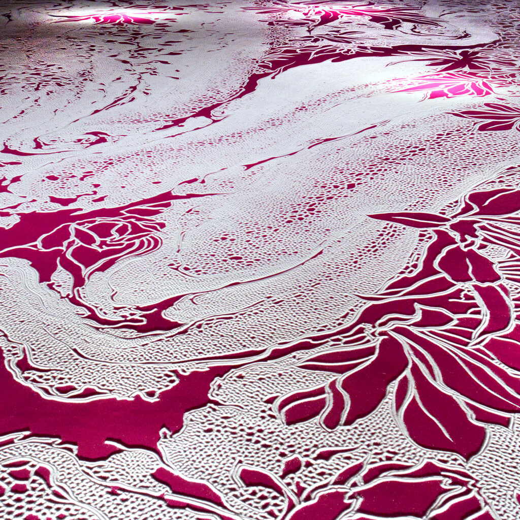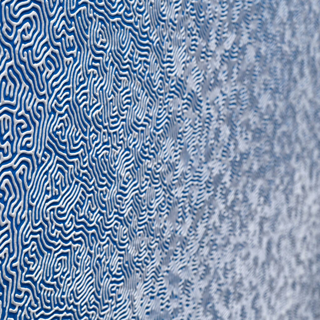 本展では、移ろいゆく時と元ちゃんハウスの歩みを重ねた塩の作品、深い秋の空を思わせる青、新たな積層シリーズに加え、塩のスクリーン上に光の線がゆっくりと広がり、やがて静かに消えていくデジタルドローイング作品も展示します。それぞれの軌跡は、記憶が生まれ、やがて消えゆく過程を、そっと映し出してくれるでしょう。