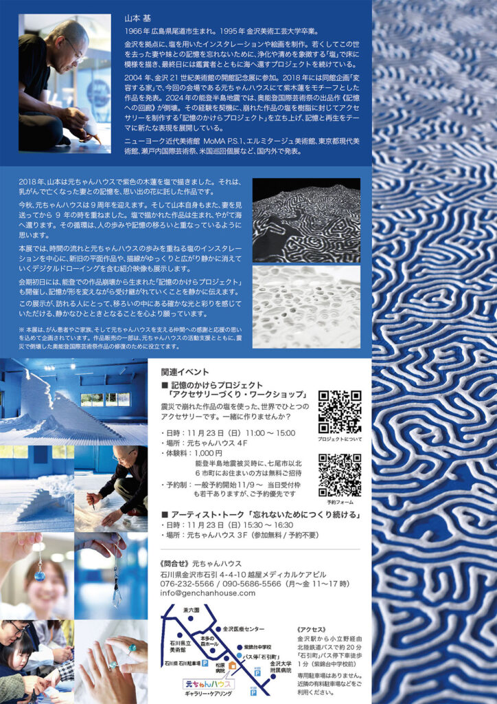 I will hold a solo exhibition in Kanazawa starting Sunday, November 23. The venue is Gen-chan House, a community space in Ishibiki where I once created a salt installation of magnolia flowers in 2018.