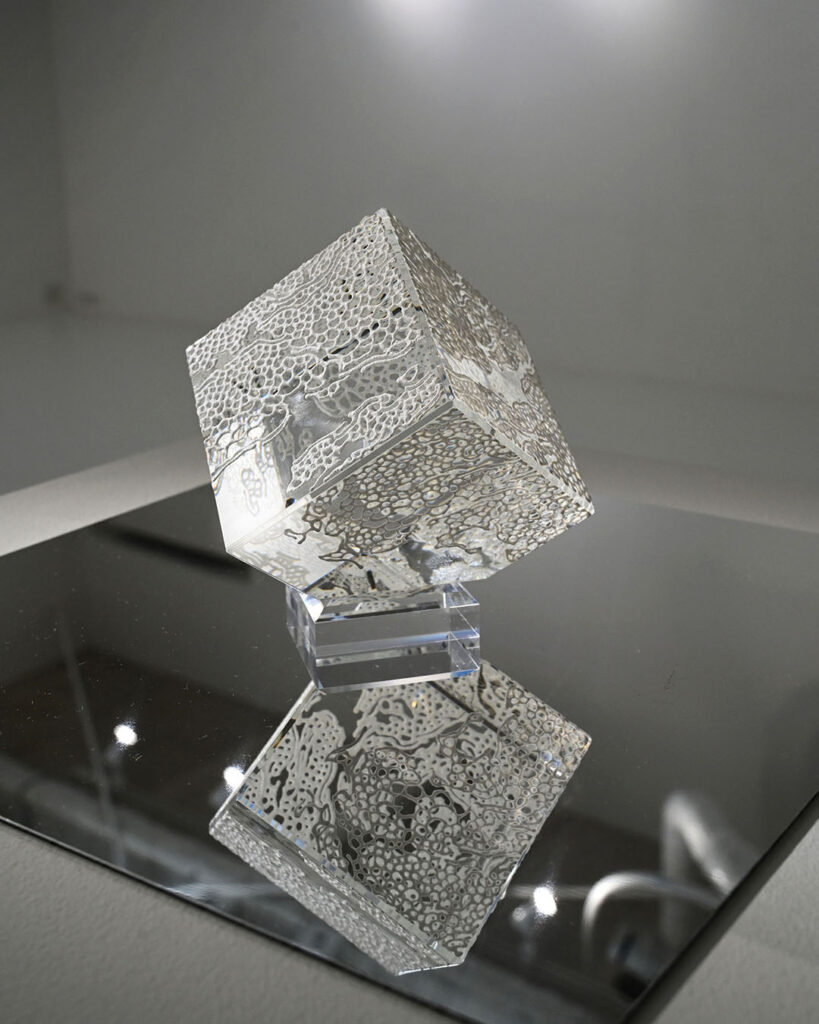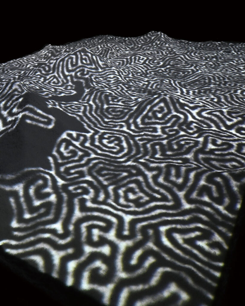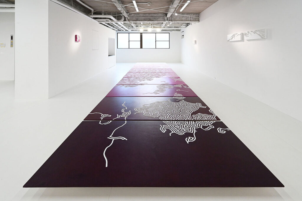 This exhibition centers on a salt installation that traces the flow of time together with the journey of Genchan House, and also includes new works on paper and video documentation of a digital drawing, in which lines of light slowly spread and quietly fade away.